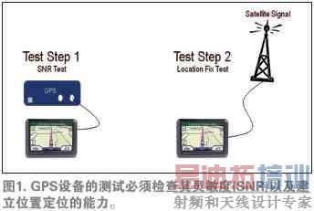 在GPS设备中,有两件关键项目需要测试(见图1)。其一就是确认设备足够灵敏,并能准确捕获叠加(即调制)在卫星载波信号上的数据。