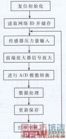 PGA对模拟信号进行放大,对放大后的压力数据进行模数转换,其中模数转换器ADCINC12时钟为VC2,即val的三分频2 MHz。转换完成后,对数据进行处理、保存、更新,压力量采集流程如图8所示。