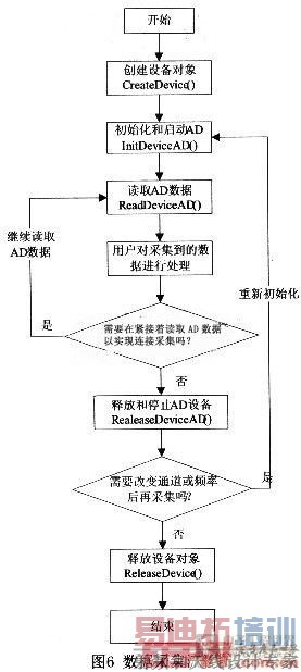 数据采集模块在整个系统中占有重要的地位,它是系统的核心。其工作流程图如图6所示,本模块主要完成通道控制、触发控制等功能。数据采集部分的参数设置正确与否,直接影响到后面的分析、处理、显示等功能能否实现。这部分的参数设置主要包括: