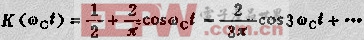 式中G为二极管正向电阻和负载RL反映到T3一次的电阻相串联的等效电导;K(WCT)称开关函数,它在UC正半周时等于1,而在负半周时等于零,其可按富氏级数展开为