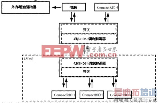 控制系统由3个位于LVMS内部的CompactRIO装置、1个CompactRIO和1台位于地面测量站的电脑组成。通信结构如图2所示。