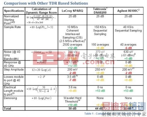任何基于TDR测试设备的动态范围都可以通过下面这个公式计算: