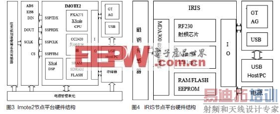 虽然多个操作系统支持Imote2,如TinyOS、Linux和SOS,但在Imote2传感器节点上部署嵌入式Linux 既能体现通用操作系统的易于开发和移植的特性,又可以展示Linux自身对外设和网络支持良好的优势,有利于应对不同无线传感器网络应用的需求,因此,选用Linux对Imote2进行应用开发[9]。在对IRIS节点的操作系统支持方面,可运行TinyOS1.1.7或更高版本。