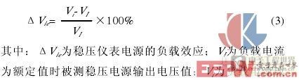 负载效应的测量是仅山于负载的变化而引起电压或电流稳定输出量的变化量的测量。对于稳压仪表电源负载效应的测量,采用图1所示电路,计算公式为: