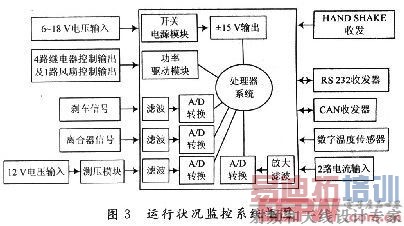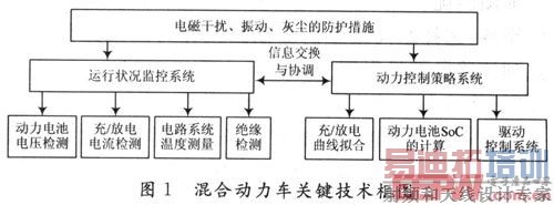实现混合动力车共有三个关键因素:能够对汽车运行状态详细监控的系统;分析监控系统所获取的信息,并发出相应的控制命令;相比一般电子系统,混合动力车电子控制系统工作在车内非常恶劣的环境,电磁干扰、振动、灰尘等都会造成技术上的瓶颈,如图1所示。