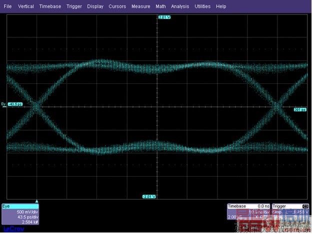 对比图9可见,眼图质量大大提升,这代表了系统的真实性能,在测试仪器内嵌入均衡技术已经成为高速测试的解决方案之一。