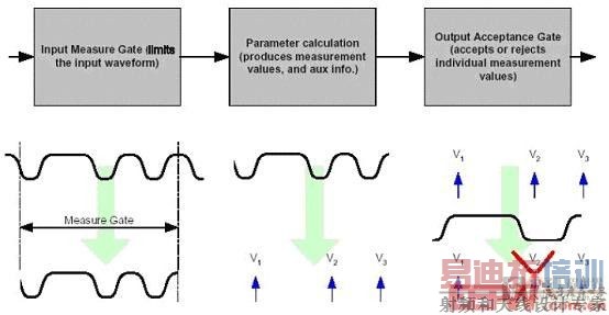 图1 测量门限选择想要的波形部分,参数测量后容许的标准基于选定的波形或范围限定来判定是接受还是拒绝个别的测量值
