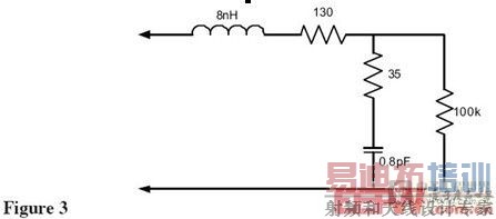 查看Figure 1中的等效电路,可以看到谐振频率(1/(2*PI*sqrt(LC))给出)点的探头输入阻抗是0欧姆——完全消除了被测信号!最近一些制造商开始注意这个问题并设计具有更好输入特性的探头。Figure 3展示了这种探头(Probe A)的等效电路。这是许多给出这个探头精确依赖于尖端和地夹的等效负载模型之一。这个探头还有一个谐振点大概是2GHz,该频点的阻抗被电阻限制到大约165欧姆。