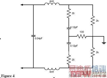 新的WaveLink差分探头的等效电路如Figure 4所示。设计包括抑制谐振阻抗的电阻,也能通过消除地夹电感减少电感。输入电容进一步减少到非常低的水平,有效的是谐振频率移到7GHz,好于单端探头。