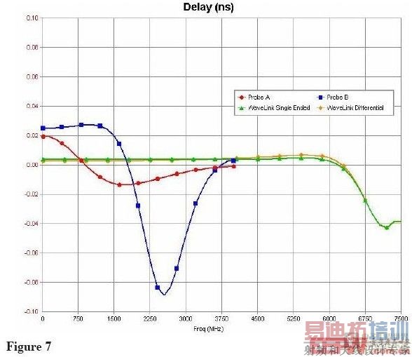 取决于探头负载,延迟或许不是频率常数。这意味着信号由不同的沿速率(不同频率成份)会被延迟不同的数量。当探头和输入从容性变到感性谐振时,延迟也变化。甚至探头试图减少LC谐振的幅度影响,也会使信号的时间延迟失真。唯一真正的解决方案是移到被测频率之上的谐振频率。