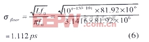 一般来说,VCO输出级放大器的热噪声基底可以看成有限带宽的高斯白噪声,其有效带宽大约为工作频率的两倍。当VCO正确地调谐到需要的输出频率时,噪声基底对抖动的影响可以用下面的公式计算:
