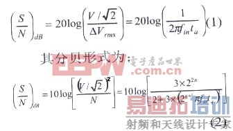 采样时钟的抖动是一个短期的、非积累性变量,表示数字信号的实际定时位置与其理想位置的时间偏差。时钟源产生的抖动会使ADC的内部电路错误地触发采样时间,结果造成模拟输入信号在幅度上的误采样,从而恶化ADC的信噪比。 在时钟抖动给定时,可以利用下面的公式计算出ADC的最大信噪比: