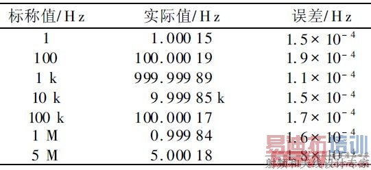 为验证所设计信号源发生器性能, 在按照上述硬件和软件设计后, 对其输出信号各项指标参数进行了实际测试, 其中使用Agilent 53132A 和National VP7720A 对其主要参数输出频率精度和总失真度系数的测试数据如表3 和表4 所示。