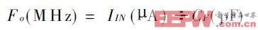 MAX038 输出信号的频率由注入引脚IIN 的电流IIN 、COSC 引脚端接的电容CF 以及引脚FADJ 上的电压V FADJ 决定。当VFADJ = 0 V 时, 基本输出频率Fo 由下式给出: