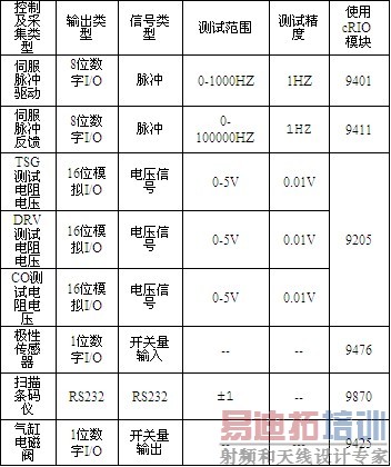 由于本系统功能测试类型较多,单一的数据采集设备或I/O控制设备都难以满足要求。经过多次比较与选型,本测试系统采用NI公司最新推出的COMPACTRIO测试技术,基于低层FPGA编程的NI cRIO-9074进行系统构架。该系统构架结构如表1所示。