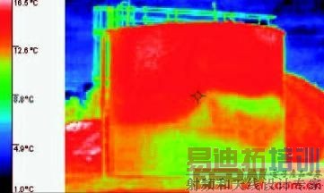 储槽中通常含有液体或气体。液体与气体相比热容量较高,因此它的温度改变比容器上方气体的温度变化要慢的多。由于多数储槽位于户外,其内部物料会因白天的阳光照射而温度上升,并在夜间时温度下降。物料与容器上方空气之间的这种温度差别,通常可透过多数储槽壁很容易被观察到。这种技术在日落后使用效果最佳。在阳光大面积照射的情况下对储槽进行热成像通常比较困难,但在白天,通过在容器北侧或阴面进行检查,通常可获得满意的结果。警告:确保在您确认容器中的液位或可用容量之前,没有人尝试向容器中添加物料。完全空或完全满以及具有闪光反射性外壁的储槽的热图像显得十分均匀,将看不到物料液位。否则,产品液位将表现为容器上方空气与产品之间的明显热量区分。正确获取的一个热图像还将揭示出储槽底部的淤浆聚集,这种聚集的淤浆可导致提前腐蚀,使对储存的产品量进行计算变得困难。定期监视可帮助您确定一个清洁计划,并对淤浆聚集速度的变化进行跟踪。您可通过仅在需要的时候对储槽进行清洁而节省资金。