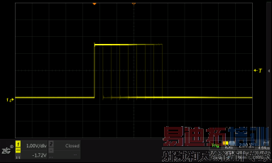 对于周期性的波形信号来说,自动测量相对于光标测量来说,统计的数据量多,测量结果为统计数据的平均值,相对来说更加准确。但是如果信号噪声很大,自动测量则有可能将噪声也统计进去,所得结果也会有较大误差。自动测量项目一般为常规项目,当有特殊需求时,自动测量便无能为力了,比如测量下图抖动波形。