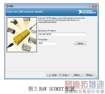 启动Masurement & Automation Explorer 软件,选择设备和接口,在添加网络设备中,使用Manual Entry of Raw Scoket(手动输入原始SOCKET)方式连接,ZDS2024 示波器采用端口号5025 来接收SCPI 命令。如图2 和图3 所示。设置好后,可进行测试,确保连接成功。