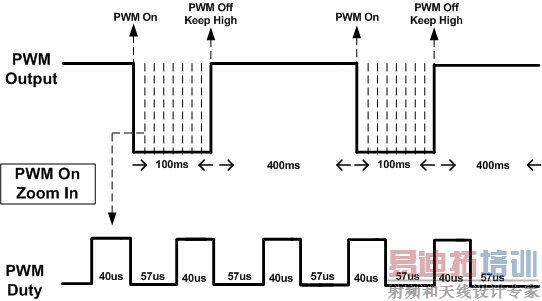 本文Gas Sensor的基本架构如下图2所示,包含一个气体传感器(CCS801 Gas Sensor)、PMOS NX2301、ADC和MCU单芯片。HY16F184可输出PWM来控制PMOS NX2301做为电流开关控制。当PWM输出为High时候,则是关闭PMOS,此时较为省电,不会有电流流经过Heater端。而当PWM输出为Low时候,则是导通PMOS,会有电流流经过Heater端,此时则开始做Gas Sensor加热动作,当Gas Sensor再加热的时相对来说也会比较耗电。 本文的电路应用架构即是利用PWM来做整体消耗电流功耗控制,设定PWM输出周期为97us,PWM输出Low的时间为比57us而PWM输出High的时间为40us。PWM On的输出持续时间是100ms,此时为CCS801的加热时间,之后PWM Off的时间为持续400ms,当PWM Off时候,此时会输出保持High,以500ms为一个控制周期不断的循环控制PMOS NX2301开关,做为加驱动器(Heater)的控制。详细的PWM控制时间图,可以参考以下图3。 HY16F184除了使用PWM做PMOS开关控制来达到功耗控制与省电的设计效果,还使用了高精度ADC来做RS与RH_Current变化量测量,而撷取到的数据可以由I2C来做数据的输出与读取,详细HY16F184 ADC规格可以参考下图4。
