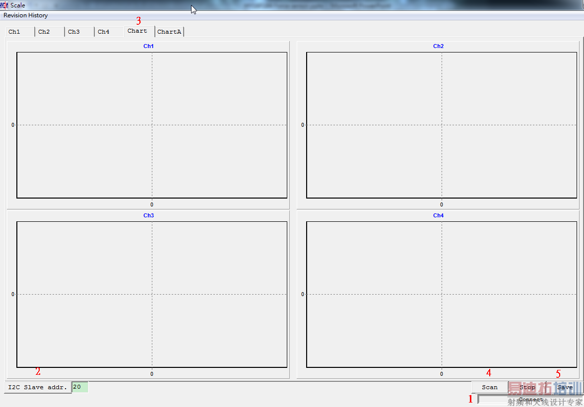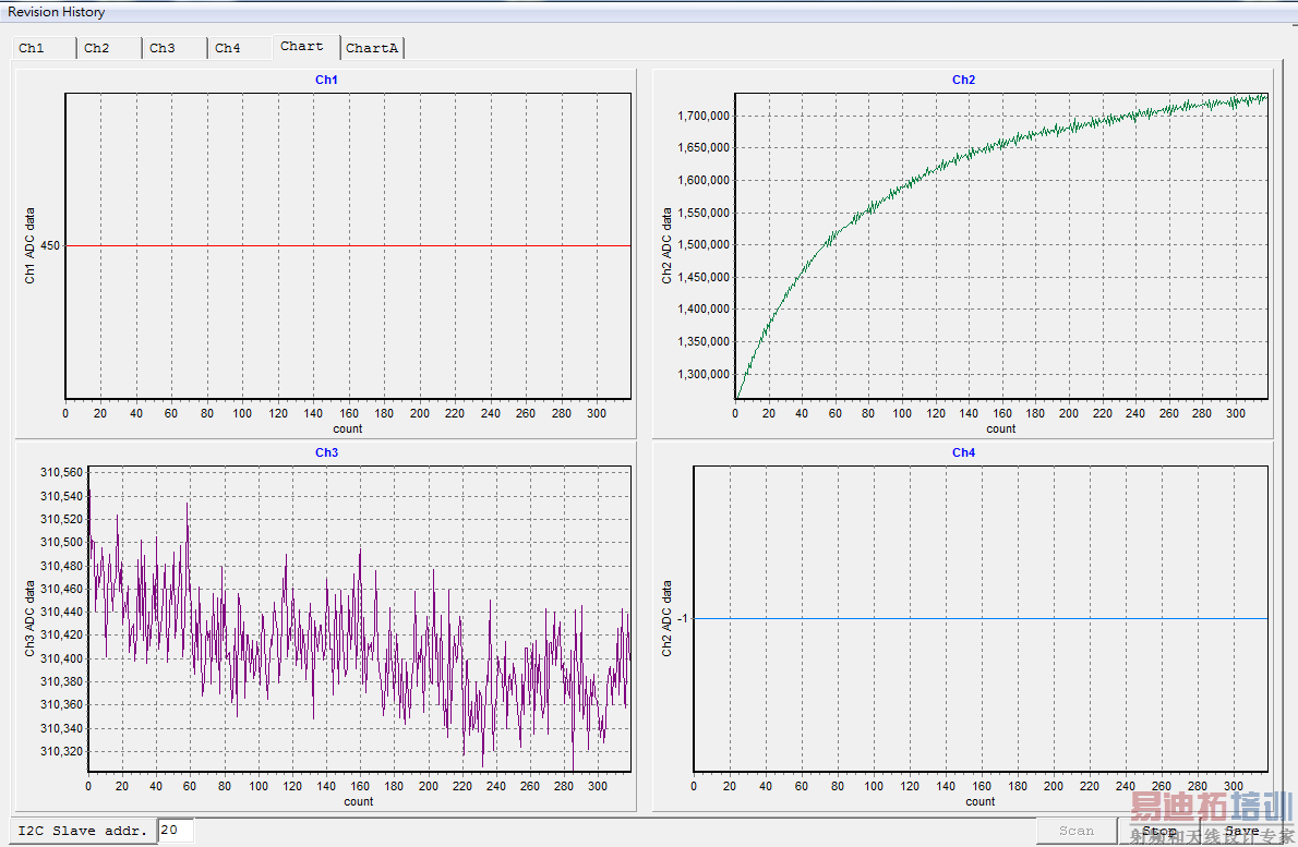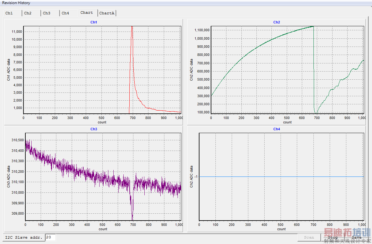 3.Chart: 显示四个信道的Gas sensor扫描数据。