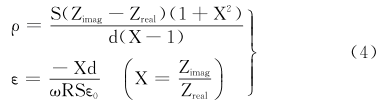 将式(2)代入式(3)后,进一步推导可以得到介质的电阻率ρ和介电常数ε为: