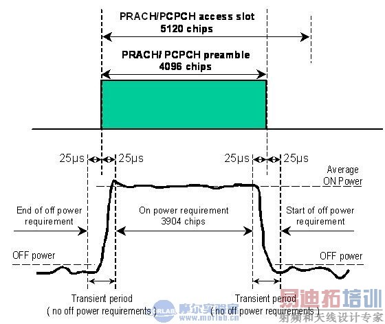 3)测试UE的第一个RACH导频部分的输出功率(开功率)之前或之后的关功率测试不包括瞬时功率;