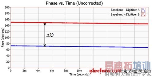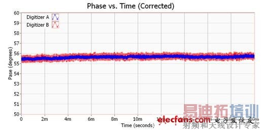 图 9. 校准过后的相位同调 RF 撷取通道「Phase vs. Time」