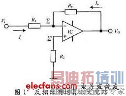 借助集成运放电路转换速率高,输入基极电流和漂移电流小,漂移电压温度系数小的特点,利用短路电流放大器的原理对待检测电流进行1:1放大,展宽信号的内阻大小要求范围,提高了检测的灵敏度,实现瞬间变化电流的检测。图1所示为一反相输入比例运算放大器电路,输入信号Vi经过电阻R1接到集成运放的反相输入端∑,而同相输入端∑经过电阻R2接地。输出电压VO经反馈电阻RF接回到反相输入端,形成一深度的电压负反馈。在实际应用中为了保证运放的2个输入端处于平衡的工作状态,避免输入偏流产生附加的差动输入电压,应使反相输入端与同相输入端对地的电阻相等。在图1中应使R2=R1∥RF。由于理想运放的L=L=0,所以R2上无压降,VO=0,再由理想运放的V+=V-,所以V-=0,得Vi=Ii×R1,所以反相输入放大电路的等效输入电阻r1=V/Ii=Ii×R1/Ii=R1。若使R1=0,则放大器输入电阻即为零,根据平衡电阻的取值要求R2=R1∥RF,则R2=0,这就构成了一个短路电流放大器,电流输入的阻抗为零,输出的电压VO的大小随输入的电流线性变化。如图1所示,因为V∑∑=0,相当于信号源外电路短路,但实际并不断路,∑,∑之间电阻极大,又因为∑点对地电阻达到几兆欧,所以信号源的输出电流只能经RF和IC形成回路,即VO=IORF。