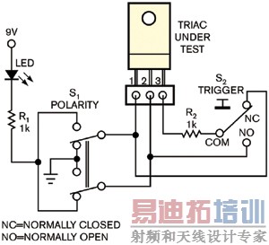 图1,双向可控硅测试仪用一只开关转换测试信号的极性。
