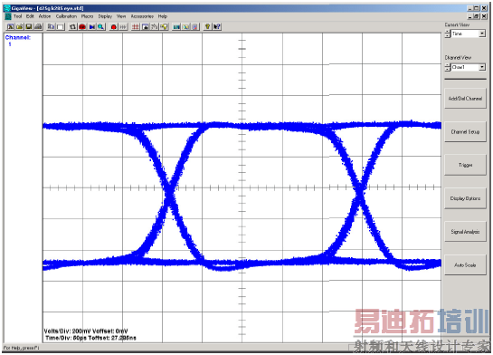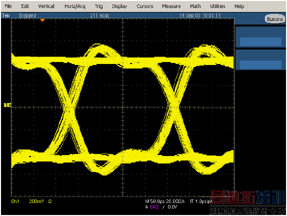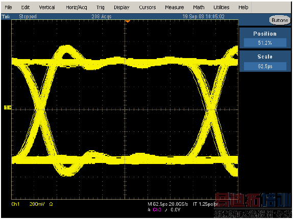 4.25Gb/sK28.5码型上升沿、下降沿均<20ps,以下分别是不同示波器的眼图表现。