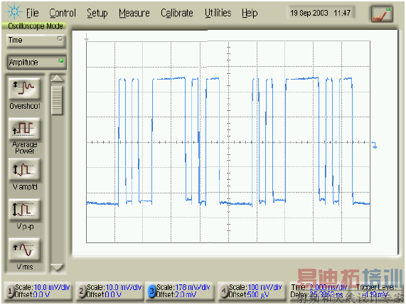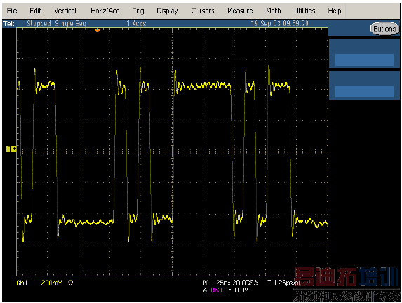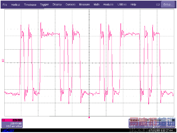 Figure1所示的波形近乎理想,而其他实时示波器则有显著的过冲。因为实时示波器在上升沿或下降沿要比采样示波器有更大的振铃,换句话说,反射更严重。
