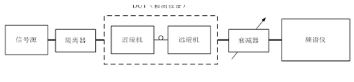 2、将信号源输出通过电缆接至被测设备输入端口,再将功率衰减器及连接电缆总损耗值作为偏置输入频谱仪中;