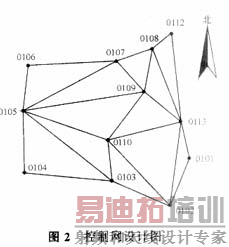 (3)设计基准和网形如图2所示,控制网共12个点,其中联测已知平面控制点2个(I12,I13),高程控制点5个(I12,I13,105,109,110,其高程由四等水准测得)。采用3台GPS接收机观测,网形布设成边连式。