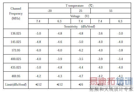 极限条件下灵敏度需小于等于EMF 12dBμV ;