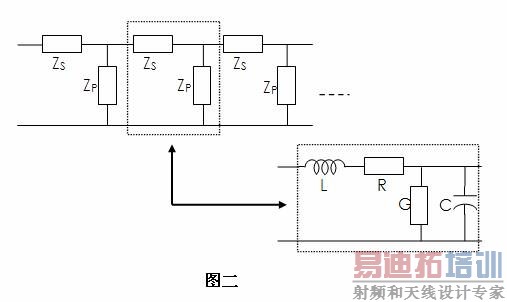 依据传输线的理论[1],高频讯号部份的走线可以建构如图二所示的模型。