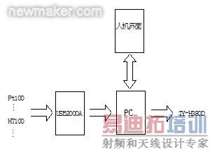 首先在PC上设定发生器温度、P值、I值、D值等所需参数,系统开始运行。传感器将信号送至数据采集卡USB2000A,经由USB接口送至PC。通过将实际测得的发生器温度与设定值比较,PC发出信号控制调压模块调节加热量。