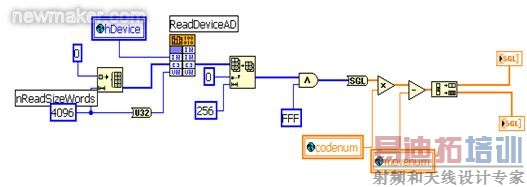 数据分析模块可以处理和显示从采样模块传来的数据,并可经过处理,将其在用户终端上以一个完成的数据表格输出。同时,该模块通过LabVIEW提供的CIN节点实现了与VC++仿真程序的链接[2],可以将仿真计算结果和实验数据同时显示出来,方便进行比较和误差分析。