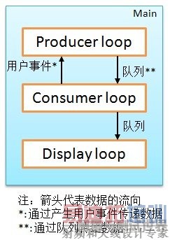 打开Error Handling in LabVIEW.vi的程序框图,其包含三个循环,分别是Producer loop,Consumer loop,Display Loop。Producer loop用于响应用户事件,并通过队列通知Consumer loop执行相应的操作;Display loop用于对前面板显示控件进行更新。