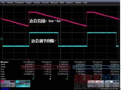 图3 对比0.1Hz低频率的脉冲信号的边沿调节范围