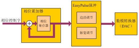 鼎阳自主创新了一套脉冲发生的算法,就是目前主推的SDG5000系列信号发生器具有的EasyPulse技术。基于这项新的技术,SDG5000信号源能够产生低抖动、不受频率影响的快速上升下降沿;占空比极小;边沿、脉宽可大范围精细调节。原理框图如下: