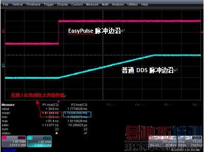 1.如图1,输出1Hz频率脉冲时,EasyPulse脉冲仍然可以保持快速的上升沿和下降沿(6ns);但是普通的DDS脉冲边沿很缓慢,为毫秒级。