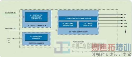 下图是超声无损检测设备的典型电源链,它既可以由电池供电,也可使用交流电。