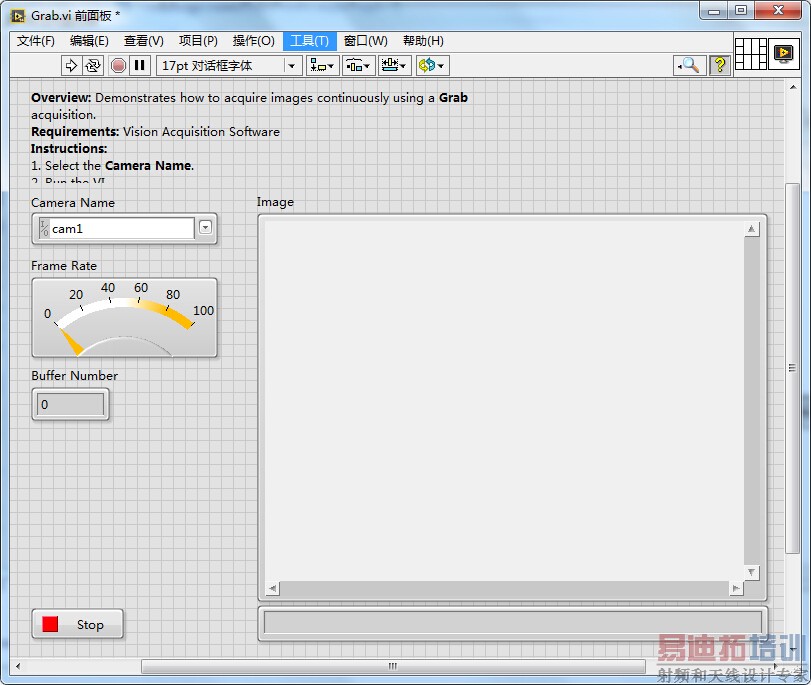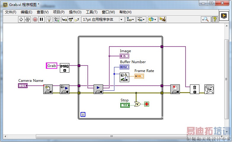 摄像头打开之后便一直采集图像,存储在IMAQ开辟的临时空间里,只要while循环不断的读取临时空间就可以显示当前图像(grab调用的是image句柄)