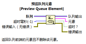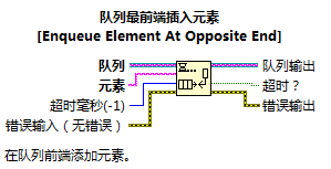 函数作用:将元素入队列和出队列用(没什么好说的!)超时毫秒(-1)端子:如果未连接,默认输入值为-1,表示永不超时,如果队列满,则一直等待直到队列有空位为止;如果连接端子,则新元素等待设定时间后仍无法入队列,则结束本次等待!