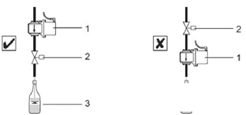 4.2.2 安装位置。安装在阀门附近,灌装流量计不能安装在控制阀的下游(图6),如果装在控制阀的下游,在一个灌装周期结束后,传感器的测量管道完全排空,这样会严重影响下个周期的测量。