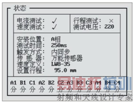 在这个界面下可以检测高压开关动特性测试仪的断口通道是不是完好,断口输入如果是悬空,应该显示"分",如果对地短路,则应该显示"合"。所以分别把各个断口对地短接一下,观察状态显示的变化,来确定仪器断口时间通道是否正常。