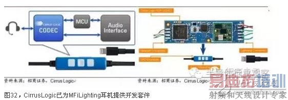 CirrusLogic已为MFiLighting耳机提供开发套件。苹果的音频解码芯片独家供应商Cirrus Logic已于2016年6月30日宣布推出基于苹果官方认证的MFi耳机开发套件,协助OEM厂商快速开发出Lighting接口的数字耳机。与iPhone 6s相比,新的方案将原来位于手机主板上的音频处理芯片转移到Lighting接口耳机线控中,在手机中实现全数字音频,有效减少内部信号的干扰和衰减从而提升音质。同时,数字接口赋予音频更多的功能,比如搜集用户听音乐的风格和习惯数据,与iOS平台App结合,实现数字均衡调音等。