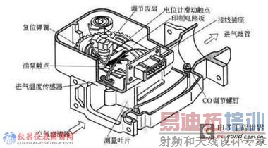 活门式空气流量传感器装在汽油发动机上,安装于空气滤清器与节气门之间,其功能是检测发动机的进气量,并把检测结果转换成电信号,再输入微机中。该传感器是由空气流量计与电位计两部分组成。