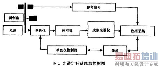 光谱定标就是确定成像光谱仪各个通道的光谱响应函数,即确定探测器各个像元对于不同波长光的响应,进而得到通道的中心波长以及通光谱带的宽度。通光谱带的宽度一般用半高宽表示,半高宽指的是通道响应曲线中,对应最大输出响应的一半的两个波长之间的宽度。传统的并且占主要地位的光谱定标系统结构框图如图1所示。