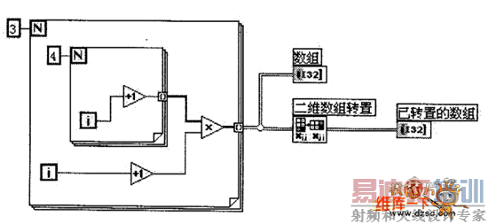 (4)使用函数“二维数组转置”对数组进行转置,如图4所示,输出结果为一个4行3列的数组。